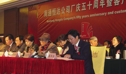2008年11月28日,恒達公司五十周年廠(chǎng)慶暨四年一度的用戶(hù)聯(lián)誼會(huì )在海安王府大酒店隆重舉行,會(huì )議由海安鎮黨委書(shū)記盧忠平主持,中共海安縣委書(shū)記,縣人大主任章樹(shù)山致歡迎辭,來(lái)自北京、西安等地國家磚瓦協(xié)會(huì ),國家砌塊協(xié)會(huì ),國家標委會(huì ),西安墻材研究設計院的行業(yè)領(lǐng)導,各省市墻改辦負責同志以及國內外用戶(hù)代表500多人出席了會(huì )議。會(huì )上公司董事長(cháng)崔恒全向來(lái)自五湖四海的賓朋表示了熱烈的歡迎和衷心的感謝。在回顧公司五十年風(fēng)雨的發(fā)展歷程后,又著(zhù)重對今后的發(fā)展提出了戰略思路。隨后來(lái)自各地的用戶(hù)代表也從不同角度對恒達優(yōu)良的產(chǎn)品質(zhì)量和優(yōu)質(zhì)的售后服務(wù)一致贊譽(yù)。江蘇省墻改辦的負責人代表我省對國家的行業(yè)負責人,各省市墻改辦負責人的到來(lái)表示歡迎和感謝。同時(shí)對恒達在墻材改革所作的貢獻給予了肯定。會(huì )議結束后,與會(huì )代表乘坐大巴來(lái)到公司北廠(chǎng)區和新廠(chǎng)區進(jìn)行參觀(guān)考察。中午恒達公司在王府酒店舉行招待午宴。席間藝人的獨唱雜技,以及交響演出博得賓客一陣陣掌聲。而國外用戶(hù),伊朗帥小伙的一曲伊朗民歌將宴會(huì )的氣氛掀向了高潮。下午,全體與會(huì )負責人來(lái)到南廠(chǎng)區舉行技術(shù)講座和聯(lián)誼活動(dòng)。這次會(huì )議是一次交流感情,促進(jìn)友誼的大會(huì )。這是一次繼往開(kāi)來(lái)盛況空前的大會(huì ),為公司把五十年廠(chǎng)慶與四年一度08用戶(hù)聯(lián)誼會(huì )有機結合起來(lái),兩者相互交融,相得益彰,相互輝煌。這里,我們展現的是會(huì )議進(jìn)程中一幕幕令人難以忘懷的畫(huà)面。