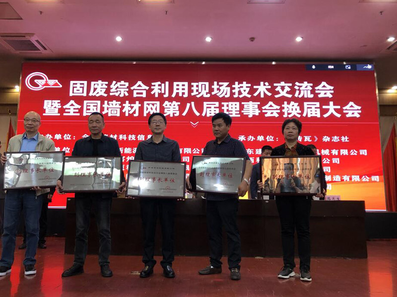現場(chǎng)進(jìn)行了固廢綜合利用現場(chǎng)技術(shù)交流及全國墻材網(wǎng)第八屆理事會(huì )換屆,南通恒達公司等5家企業(yè)換屆選舉為全國墻材網(wǎng)第八屆理事會(huì )副理事長(cháng)單位并舉行了授牌儀式。公司董事長(cháng)崔恒全先生代表南通恒達公司上臺接牌。